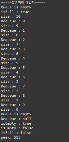 Queue 코드 전체 및 실행결과