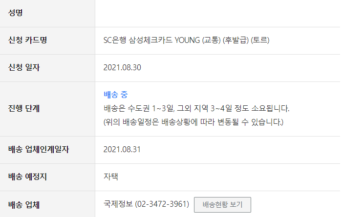 어제 8월 30일 삼성 체크카드 YOUNG 발급을 신청했다~!