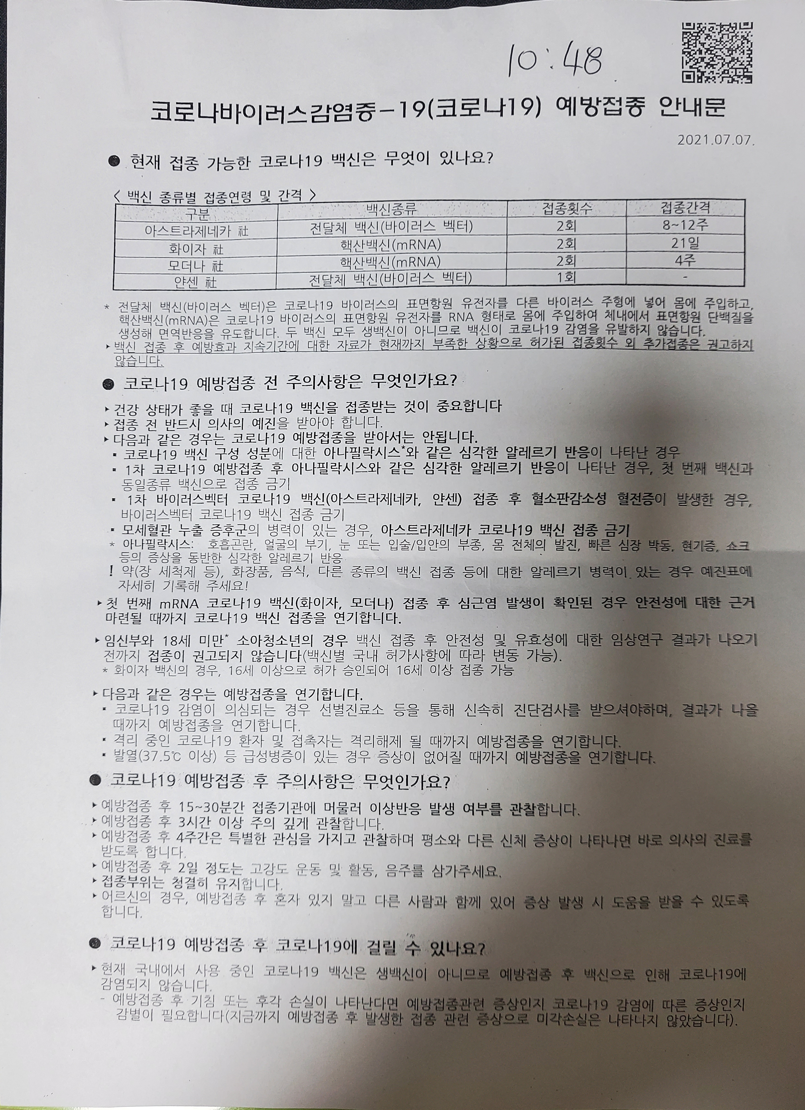 2021년 9월 6일 10시 33분, 1차 접종으로 부터 5주 경과