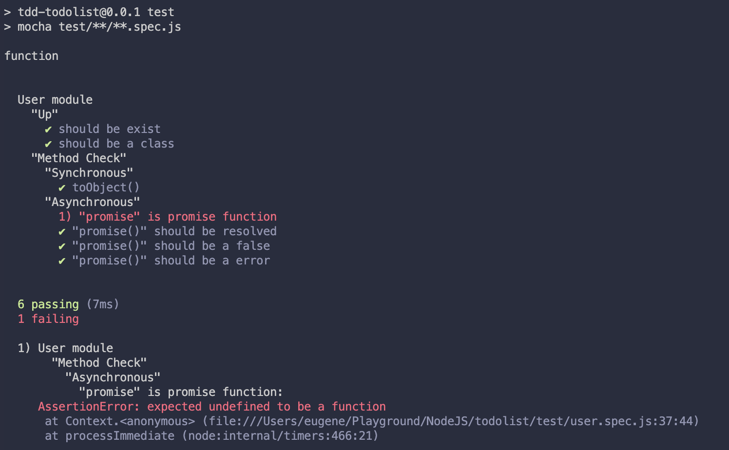 우리는 chai와 chai-as-promise를 함께 사용하여 NodeJS에서 발생하는 Asynchronous Function에 대한 테스트도 수행할 것이다.