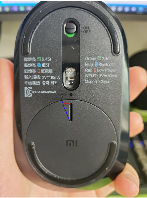 블루투스로 연결하려 했는데, 만약 제품이 안뜬다면 마우스에 있는 동그란 버튼을 꾹 누르면 깜빡깜빡 거리며 페어링 모드로 진입하게 되고, 이 때 블루투스 검색란에서 Mi Silent Mouse를 찾을 수 있다. (새로운 기기에서 블루투스 페어링을 할 때도 이렇게 하면 된다.)