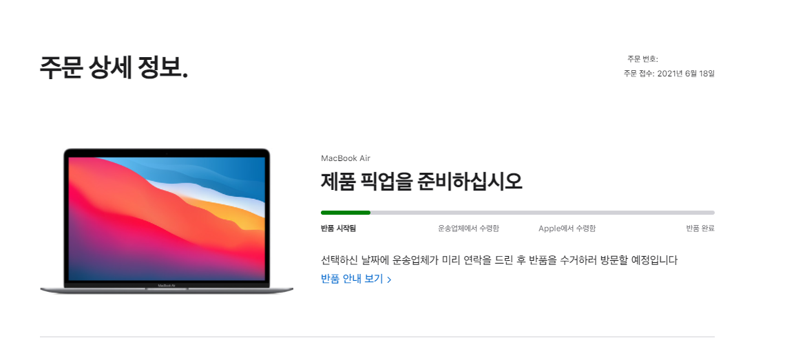 제품을 7월 1일에 수거해 갔는데, 수거 진행 상황또한 애플 제품 배송때 처럼 내가 알 수 없었다..