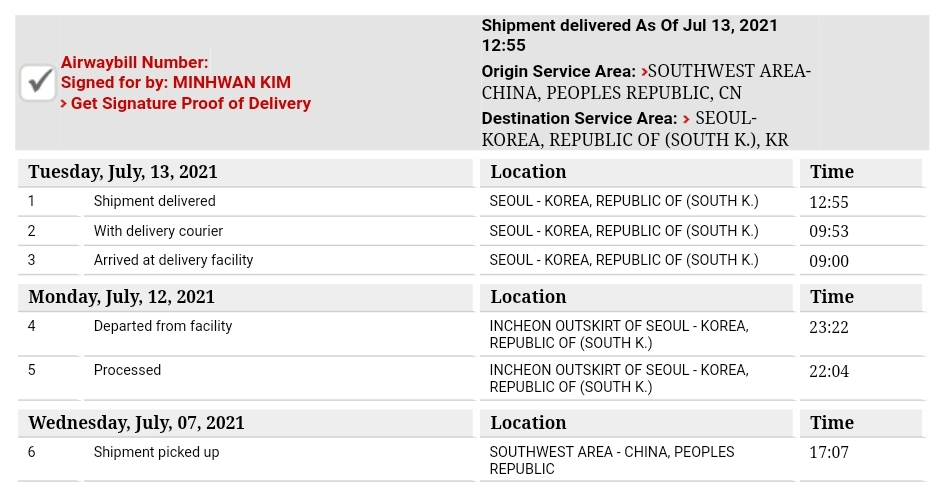 저번에는 5영업일 걸렸지만, 이번에는 6영업일 걸려서! 받았다! Anyway! 받았다!