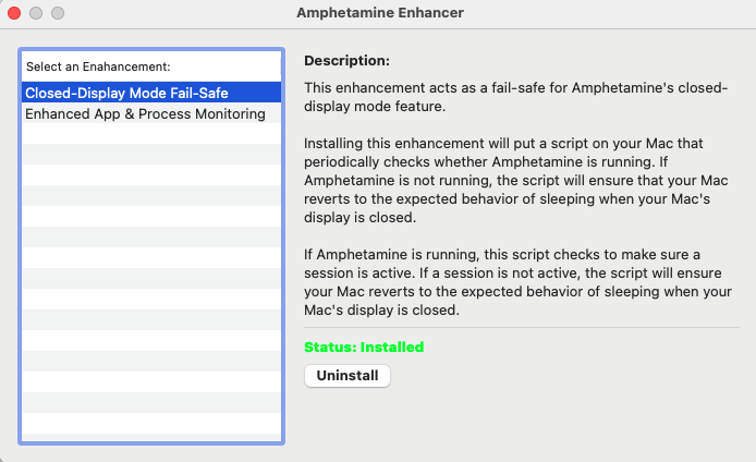 이렇게 클램쉘을 전원 연결없이 사용하려면 Amphetamine 어플을 설치해줘야 한다.