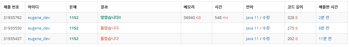 아 도대체 이 문제에 어떤 예외를 넣었을까 열심히 또 돌려봤죠. 그러고서 알아냈어요.. 역시 처음부터 쉽게보면 안돼요.. 모든 문제는 이유가 있어요..
