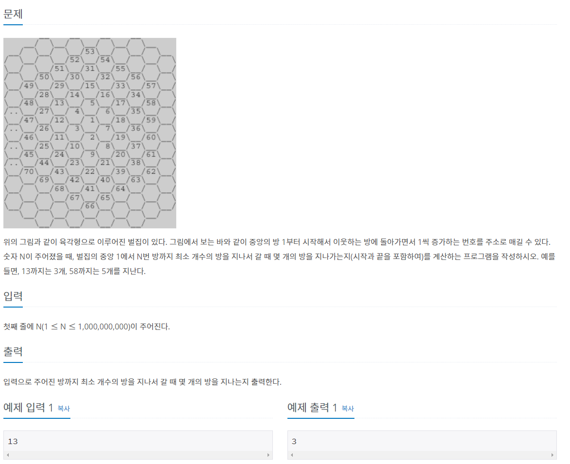 [Java 코딩테스트] 백준 2292번 문제 풀이 / 백준 벌집 문제